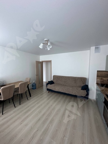 Площадь квартиры 90кв.м. , Большая кухня-гостиная 18кв.м, спальни, гардеробная, санузел раздельный,этаж 3/36Квартира новая, обставлена необходимой бытовой техникой и мебелью (стиральная машинка, кухонный гарнитур с техникой, холодильник, диван, кровать, гардеробная), проведен интернет.