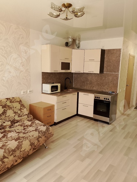 Показать полностьюСдается 1комнатная квартира-студия 30 м2. Большая лоджия. Полностью укомплектована современной мебелью (кухонный гарнитур, диван-кровать, шкаф, стол и стулья, прихожая, тумба под ТВ, журнальный столик); бытовой техникой (холодильник, стиральная машина, СВЧ-печь, электроплита, телевизор, пылесос, чайник, утюг); всеми нужными бытовыми мелочами (гладильная доска, сушилка для белья, зеркала, постельные принадлежности, полотенца, часы, мусорные ведра, коврики и др). Можно заехать и жить сразу без дополнительных затрат. Конечная остановка 83 автобуса, рядом лес. Страховой депозит 20 000 руб. Желательно проживание одного некурящего человека без домашних животных.