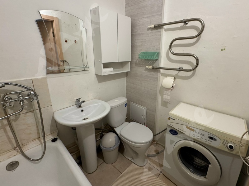Однокомнатная квартира-27,3 кв. м. с балконом на 5-м этаже. Комната 14,6 кв.м., отдельная кухня 6 кв.м., совмещенный санузел. Окна выходят во двор. Из мебели и техники имеется: кухонный гарнитур, стол, табуретки, холодильник, стиральная машина, диван, шкаф, прихожая, стенка, прихожая. Ухоженный подъезд. Парковочные места у дома в достаточном количестве. Для 1-2 х человек. Долгосрочно. Страховой депозит составляет 10 000.