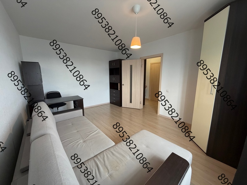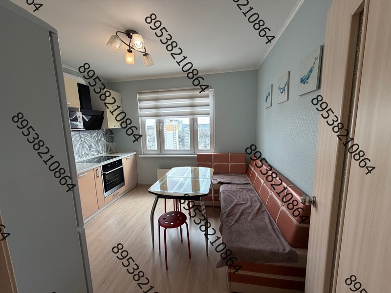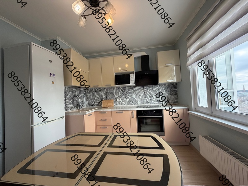 Квартира на 9-м этаже. Из мебели кухонный гарнитур со встроенной техникой, духовой шкаф, варочная поверхность, и вытяжку. Шкаф купе, кровать с матрасом, стол и стулья 3 штуки. Комод. Стиральная машина.