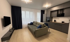 Показать полностьюПлощадь квартиры 25 кв.м, этаж 18/18, дом очень теплый , батареи зимой регулируются, большие французские окна. Квартира новая ,все как на фото. Из техники есть: стиральная машина, холодильник, вытяжка, плита и духовой шкаф; из мебели :диван, стол, стулья, вместительный шкаф в прихожей.