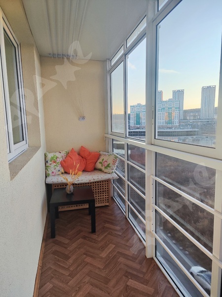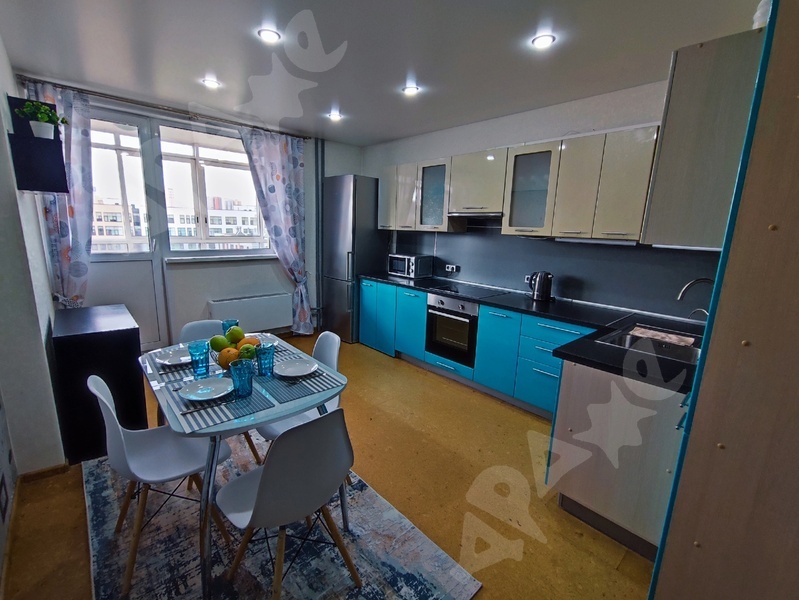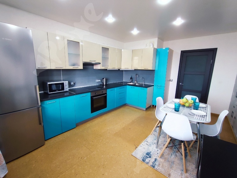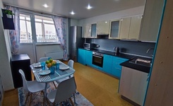 Квартира на 6-м этаже. Площадь гостиной 22 кв.м., кухни 16 кв.м. (можно использовать как кухню-гостиную), панорамная лоджия 8 кв.м. В квартире: телевизор, холодильник, варочная поверхность, вытяжка, духовка, стиральная машина, микроволновка, кондиционер, пылесос, утюг+доска, диван, подушки, одеяло, чайник, посуда, столовые приборы, кухонный гарнитур с фильтром для воды.