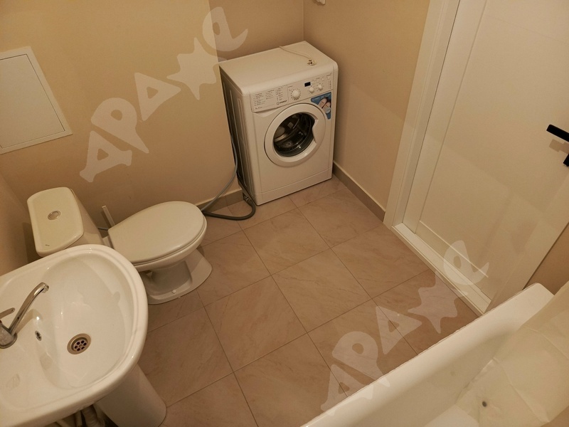 В сан. узле теплый пол, новая сантехника, стиральная машина, большая тумба под раковиной и шкаф над инсталляцией для удобства хранения вещей.