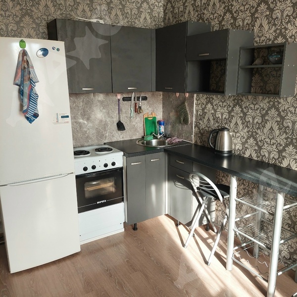 В квартире: чайник, микроволновка, холодильник, стиральная машина, мебель.
