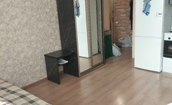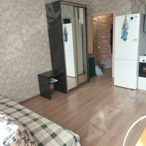 Студия. Площадь студии 22 кв.м, сан. узел 2,5 кв.м, балкона нет. Дом очень теплый, окна пластиковые, сделан косметический ремонт. Из техники: микроволновка, холодильник, плита, стиральная машина марки Bosch.