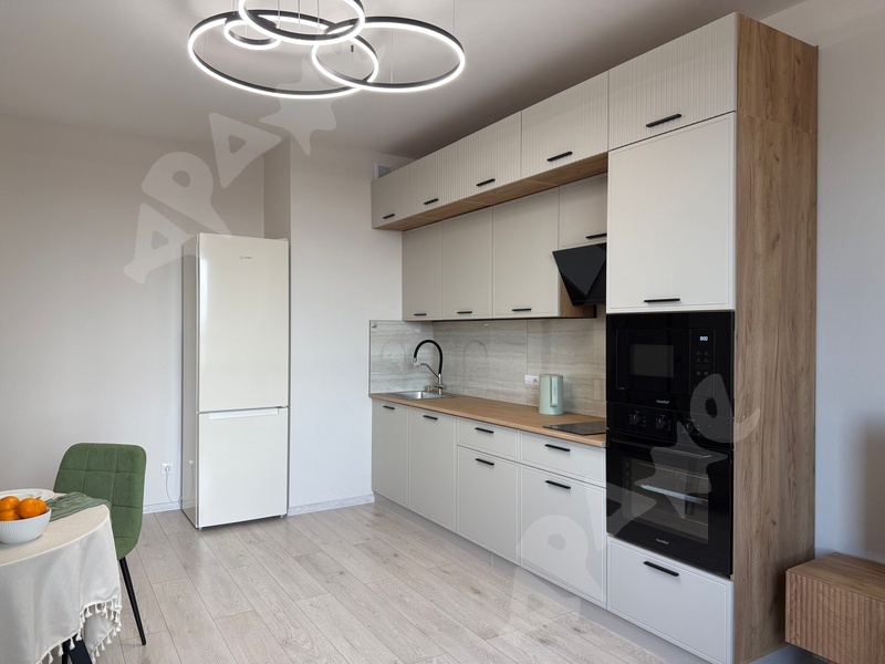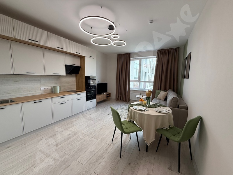 Большая кухня-гостиная и уютная спальня. В квартире выполнен современный дизайнерский ремонт. Квартира новая, Вы будете первыми жильцами!