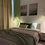 Спальня оборудована большой двуспальной кроватью с ортопедическим матрасом и прикроватными тумбами. Здесь же расположен шкаф с продуманными местами для хранения.