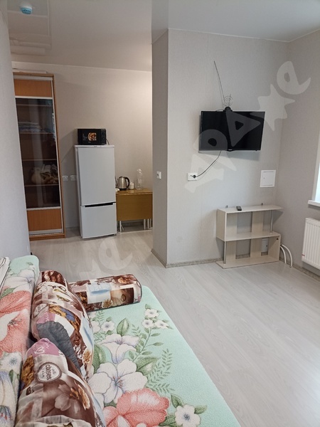 студию площадь 23.40кв.м. Есть все для проживания диван,телевизор,холодильник,стиральная машина, микроволновка,плита.Транспортная остановка рядом с домом.