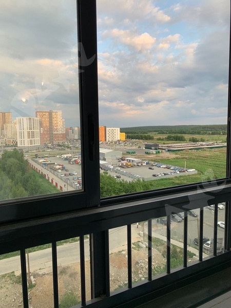 Площадь квартиры 28,6 кв м, этаж 14. Дому меньше года. Смежный санузел, балкон. Есть кровать, кухонный гарнитур, техника.