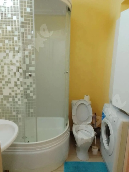 Имеется двуспальный диван, шкаф для одежды, комод, оборудована кухонная зона, стиральная машина, холодильник, новая душевая кабина, пылесос, утюг и тд.