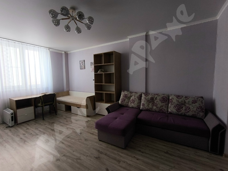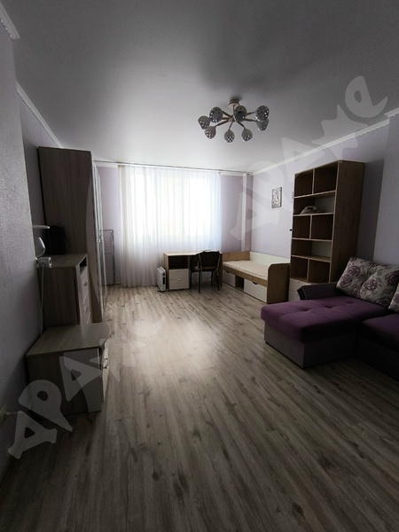 Просторная однокомнатная квартира.(42кв) Большая кухня-гостиная (20кв). Отдельная спальня, балкон, санузел совмещен.