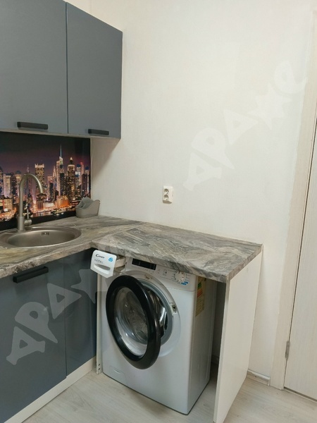 вся необходимая мебель (кухня, диван, кровать, шкаф, рабочая зона)