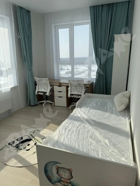 В квартире изолированные комнаты, что обеспечивает комфорт и приватность. Просторная кухня площадью 12 м² оснащена всей необходимой техникой, включая холодильник, посудомоечную машину и микроволновую печь. На кухне установлен удобный диван и обеденный стол. Из окон открывается вид на поле и лес. В спальне есть двуспальная кровать и вместительный шкаф-купе. Вторая комната -детская. Двойной шкаф, двойной стол и двухъярусная выдвижная кровать. Санузел совмещённый, оборудован ванной и стиральной машиной. В прихожей предусмотрена гардеробная. Дом расположен в районе с развитой инфраструктурой, рядом открытая парковка и спортивная площадка. Школа за домом. Курение запрещено, можно проживание с детьми, но без животных.