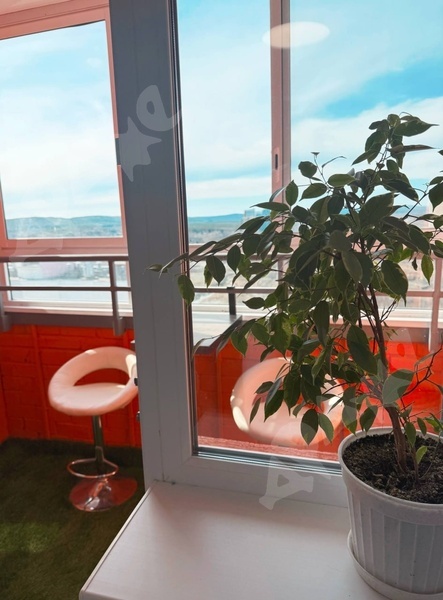 Лоджия оборудована мебелью для отдыха.
