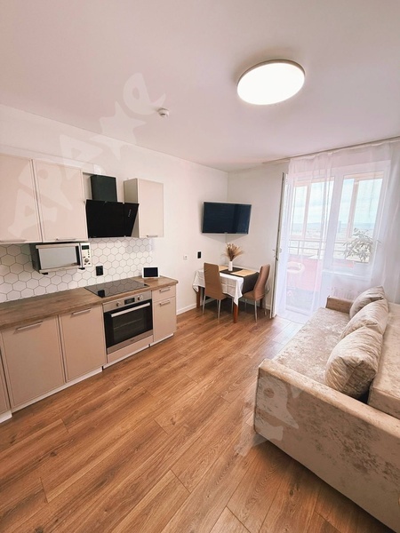 Большая кухня-гостиная и уютная спальня. В квартире выполнен современный дизайнерский ремонт. Квартира новая, Вы будете первыми жильцами!