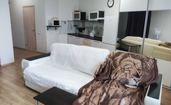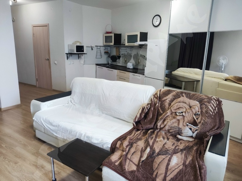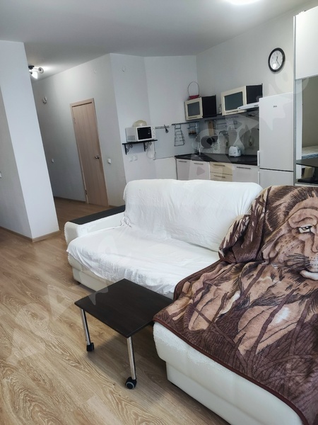 Показать полностьюСдается 1комнатная квартира-студия 30 м2. Большая лоджия. Полностью укомплектована современной мебелью (кухонный гарнитур, диван-кровать, шкаф, стол и стулья, прихожая, тумба под ТВ, журнальный столик); бытовой техникой (холодильник, стиральная машина, СВЧ-печь, электроплита, телевизор, пылесос, чайник, утюг); всеми нужными бытовыми мелочами (гладильная доска, сушилка для белья, зеркала, постельные принадлежности, полотенца, часы, мусорные ведра, коврики и др). Можно заехать и жить сразу без дополнительных затрат. Конечная остановка 83 автобуса, рядом лес. Страховой депозит 20 000 руб. Желательно проживание одного некурящего человека без домашних животных.