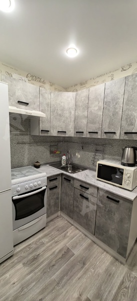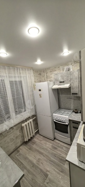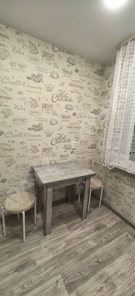 Квартира на 3 этаже трёх этажного дома, материал стен шлакоблок зимой очень тепло , сан узел смежный, ремонт как на фото. Окна пластиковые.