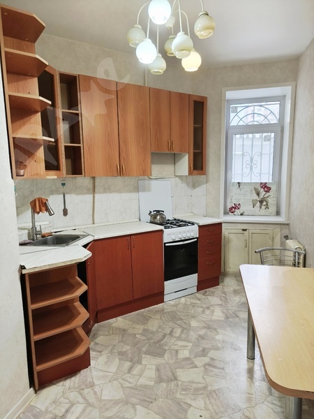 площадь квартиры 52 КВ.м., две изолированные комнаты, кухня 10 КВ.м. этаж 1/3, но окна комнат высоко от земли - на уровне второго этажа. Санузел совмещённый. Потолки высокие. Есть холодильник, стиральная машинка. В каждой комнате трёхстворчатый шкаф, диван. Вся мебель - на фото.