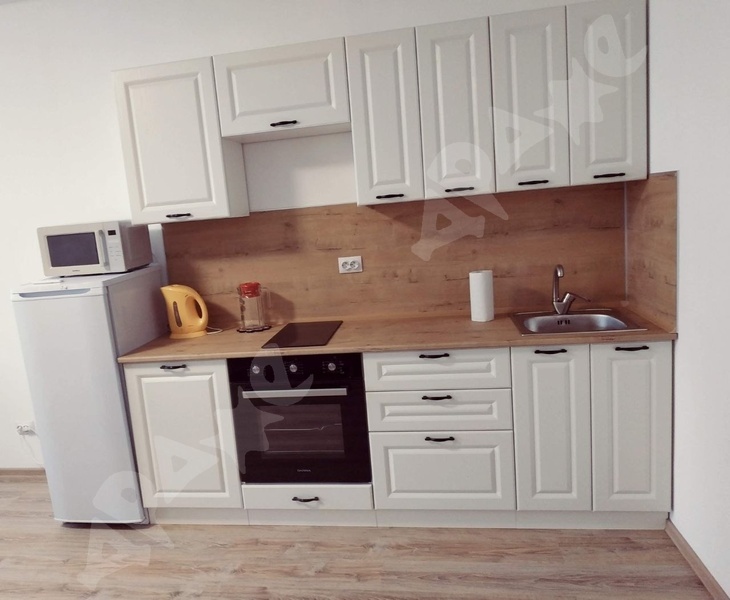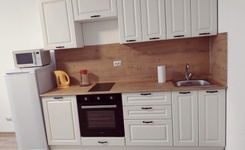 Есть абсолютно вся необходимая мебель и техника( микроволновая печь, духовой шкаф, вар. поверхность, холодильник, стир. машина и т.д.)
