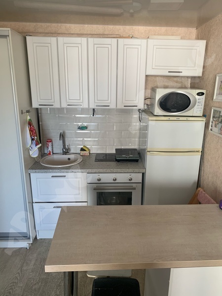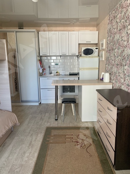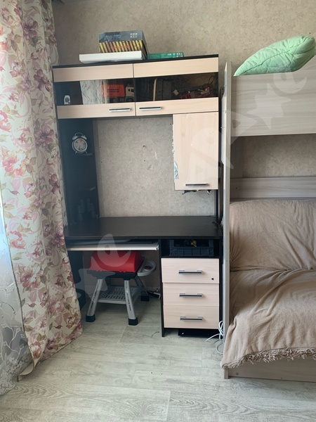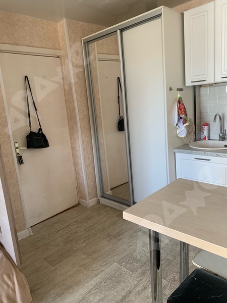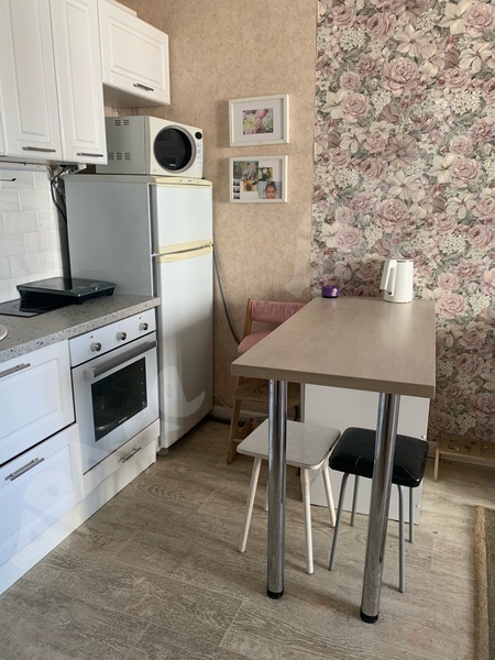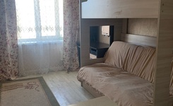 Квартира на 3-м этаже со спокойными соседями, комната с балконом, из мебели есть диван, холодильник, стол обеденный, 2 стула, шкаф купе, журнальный столик.