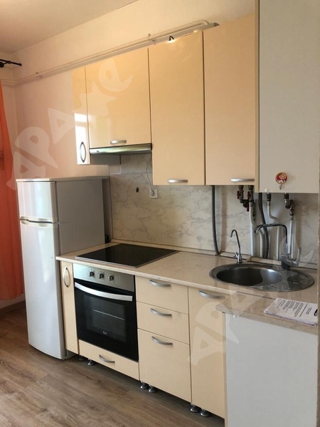 В квартире есть все необходимое для комфортного проживания: гарнитур с техникой, холодильник, стиральная машина, диван, шкаф.