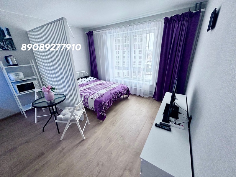 Сдается на длительный срок квартира-студия Остановки общественного транспорта в шаговой доступности. Этаж 17/26 – возможность любоваться красивыми закатами.