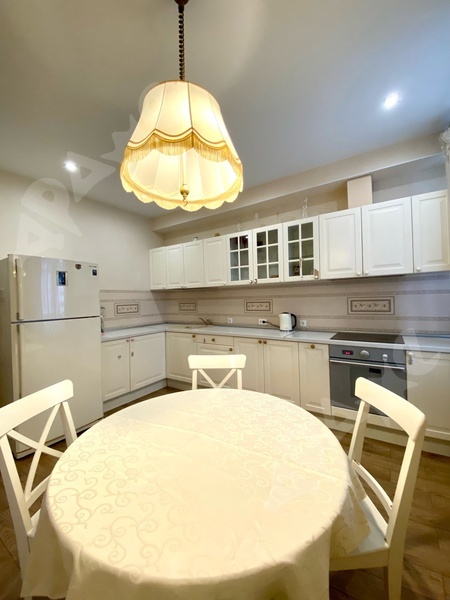 — Кухня: встроенный гарнитур, индукционная панель, духовой шкаф, большой холодильник, микроволновка, вытяжка, обеденная группа, фильтр для питьевой воды.