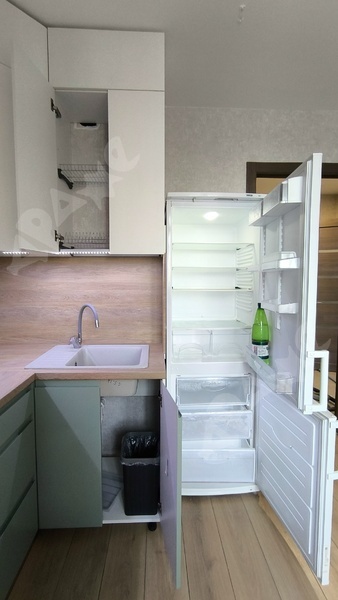 мебель: кухня новая под заказ с хорошей фурнитурой, не дешёвка с wb или озона - будет комфортно пользоваться.