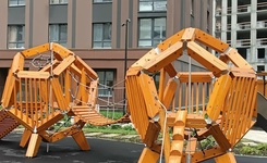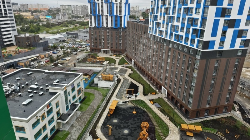Просторный и зеленый с экологичными детскими и спортивными площадками.
