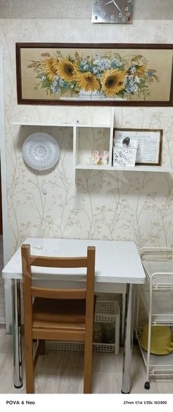 4 этаж, площадь комнаты 24 м², В комнате присутствует раскладное кресло (спальное место) и большой кофейный столик . Собственник проживает в дальней комнате — соседство минимальное, приватность сохраняется.
