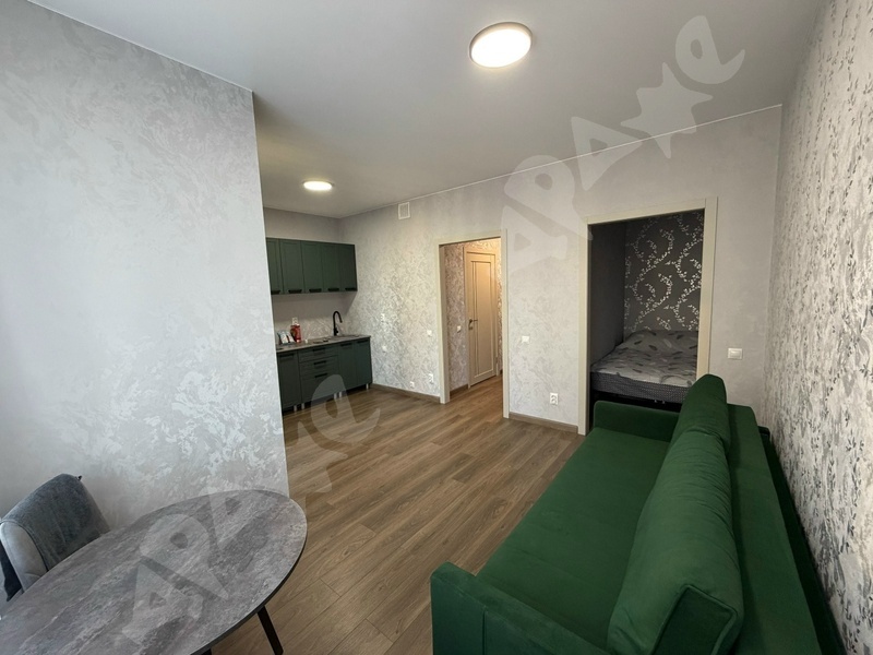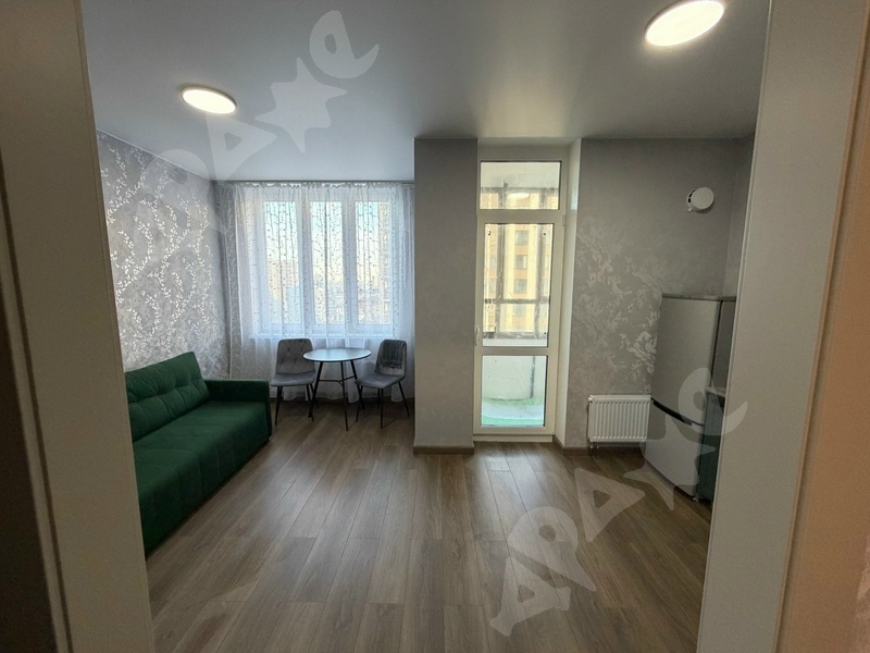 Студия в ЖК Квартал 12 комфорт класса с лоджией и гардеробной. В квартире есть все необходимое: диван, кухонный гарнитур, стол, стулья, телевизор, микроволновая печь, варочная поверхность, стиральная машина, холодильник. Ремонт: ламинат, обои, натяжной потолок, трекерное освещение. На первом этаже имеется колясочная, мягкая мебель для ожидания, а также 3 лифта. Во дворе большая детская площадка. Недалеко от дома находятся: Преображенский парк, школа и детский сад.