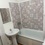 ванная комната: душевая кабина, стиральная машина.