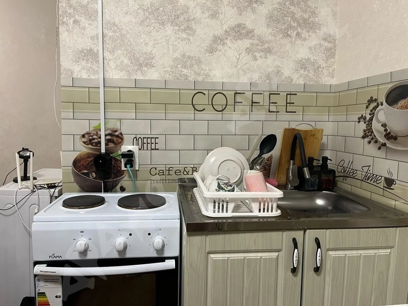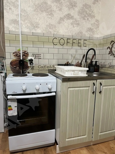 На кухне варочная панель, холодильник, чайник. Стиральная машина есть.