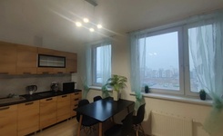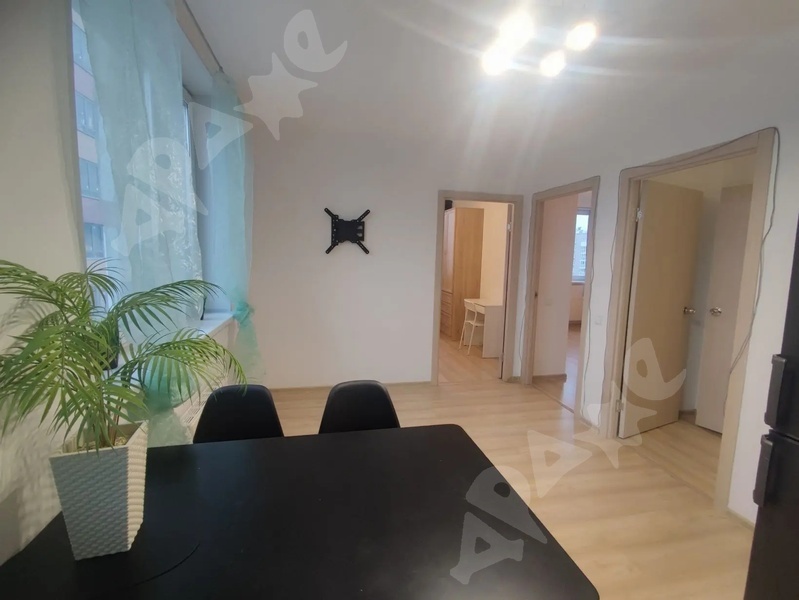 В квартире изолированные комнаты, что обеспечивает комфорт и приватность. Просторная кухня площадью 12 м² оснащена всей необходимой техникой, включая холодильник, посудомоечную машину и микроволновую печь. На кухне установлен удобный диван и обеденный стол. Из окон открывается вид на поле и лес. В спальне есть двуспальная кровать и вместительный шкаф-купе. Вторая комната -детская. Двойной шкаф, двойной стол и двухъярусная выдвижная кровать. Санузел совмещённый, оборудован ванной и стиральной машиной. В прихожей предусмотрена гардеробная. Дом расположен в районе с развитой инфраструктурой, рядом открытая парковка и спортивная площадка. Школа за домом. Курение запрещено, можно проживание с детьми, но без животных.