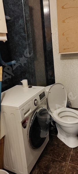 Застекленеый балкон. Санузел совмещенный, стиральная машина.