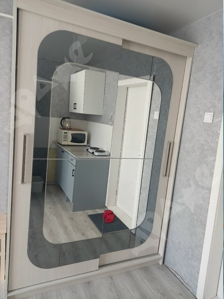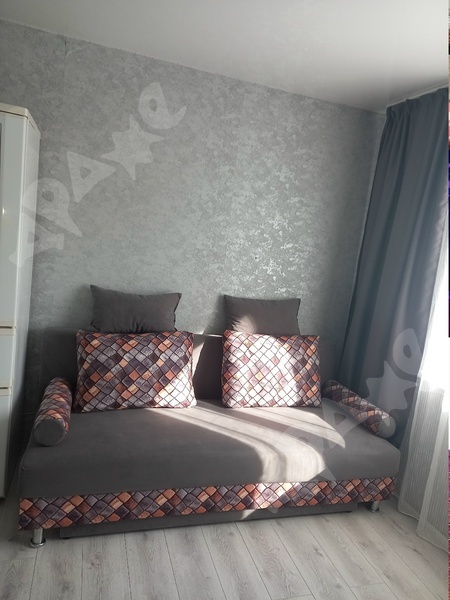 Квартира на 3-м этаже со спокойными соседями, комната с балконом, из мебели есть диван, холодильник, стол обеденный, 2 стула, шкаф купе, журнальный столик.