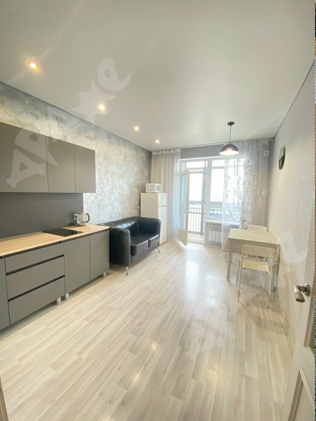 Комната правильной формы, кухня с выходом на балкон - очень функциональна.
