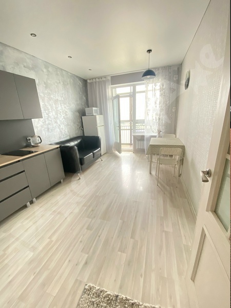 Площадь квартиры 43 кв.м. , Большая кухня-гостиная 21,2 кв.м, спальня 10,8 кв.м., гардеробная, лоджия , санузел совмещен, этаж 13/25. Квартира новая, обставлена необходимой бытовой техникой и мебелью (стиральная машинка, кухонный гарнитур с техникой, холодильник, утюг, пылесос, микроволновая печь, диван, кровать, гардеробная), проведен интернет.
