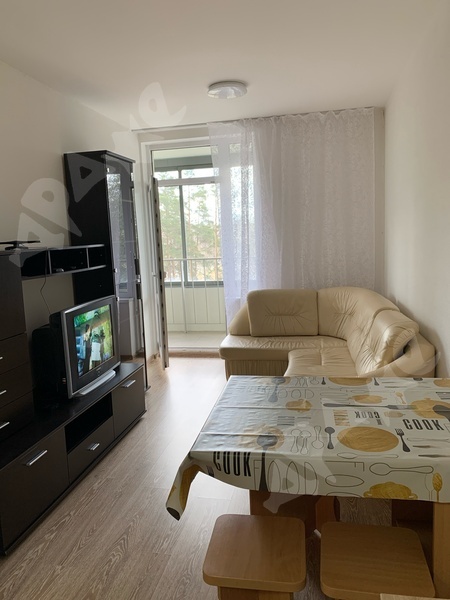 Есть вся необходимая мебель (кухня оборудована), холодильник, стиральная машина, телевизор, микроволновка, посуда, балкон.