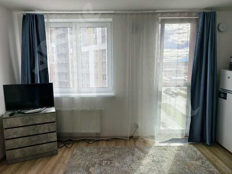 квартира 25кв.м., этаж 14/18, дом теплый, отопление регулируется, большие французские окна в пол. Квартира новая, полностью обустроена для проживания. Из мебели: диван, стол, стулья, вместительный шкаф в коридоре. Из техники: холодильник, плита, духовой шкаф, стиральная машина. Все как на фото.