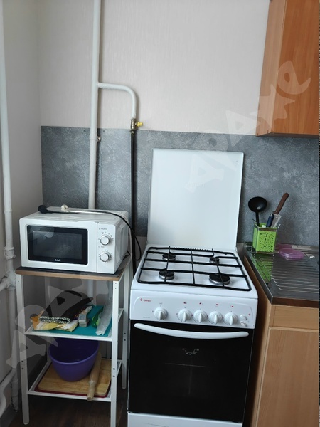 На кухне, кроме газовой плиты с духовкой и холодильника, есть микроволновка (с небольшим нюансом, но полностью исправная), электрический чайник, новая стиральная машина Bosh.