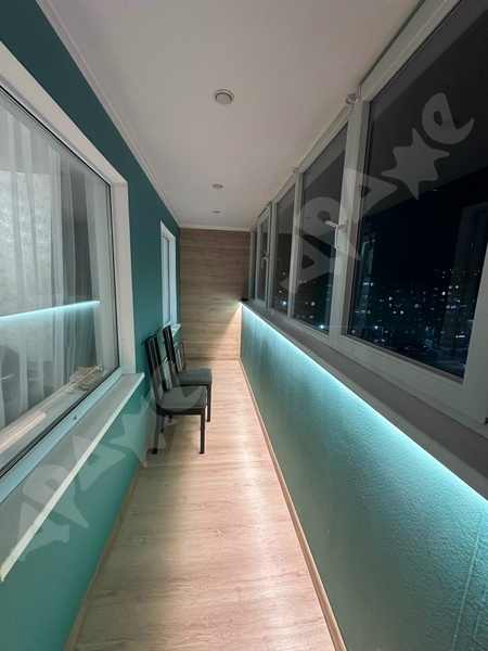 На балконе обустроены места для хранения, потолочная сушилка, теплый пол. На всякий случай есть масляный обогреватель.
