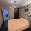 В спальне (8м2): вместительный шкаф, двуспальная кровать с ортопедическим матрасом, компактный стеллаж, косметическое зеркало с подсветкой.