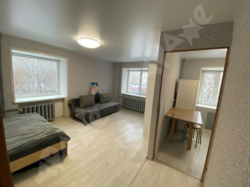 Удачная планировка с комнатой на 2 окна, одно из которых выходит на балкон. Из техники есть стиральная машина, холодильник. В комнате раскладной диван и шкаф. Новые обои везде, свежий косметический ремонт, отремонтированная ванная. Возможна докомплектация необходимой вам мебелью.