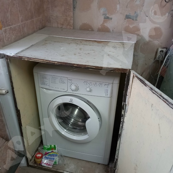 • Стиральная машина стоит отдельно в закрытом коробе в общей кухне