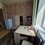 Кухня оборудована всей необходимой техникой: холодильник, плита, микроволновая печь и стиральная машина. Есть обеденный стол и стулья.