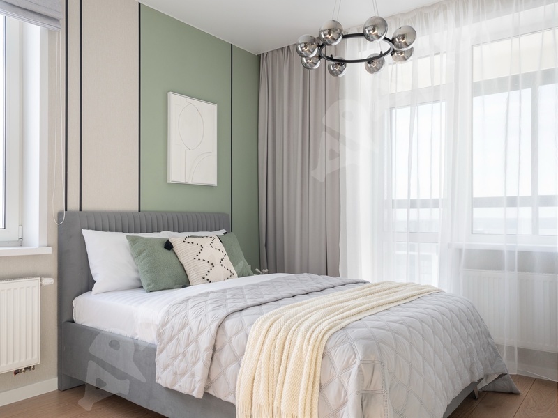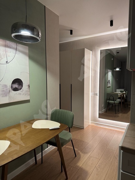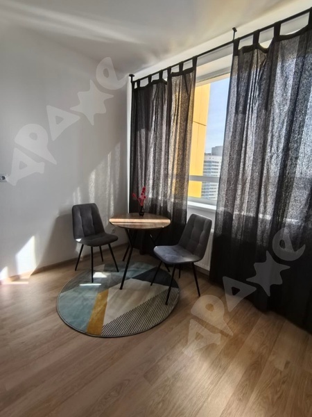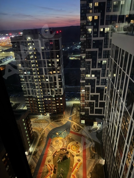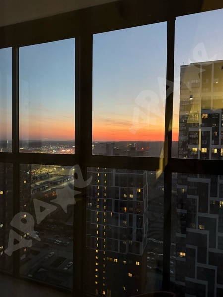 Квартира на 24- м этаже с панорамным видом, квартира оборудована отдельной гардеробной комнатой, кухня с посудомойкой, большой холодильник, микроволновка, чайник, кровать с подъемным механизмом для хранения вещей, шкаф, комод.