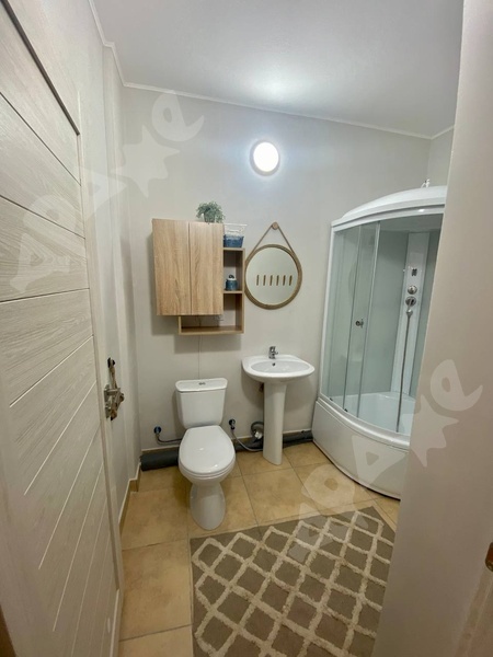 В квартире есть всё необходимое для комфортного проживания: удобная мебель на кухне и в комнате, а также вся необходимая техника — холодильник и стиральная машина. Санузел совмещённый, установлен современный душ.