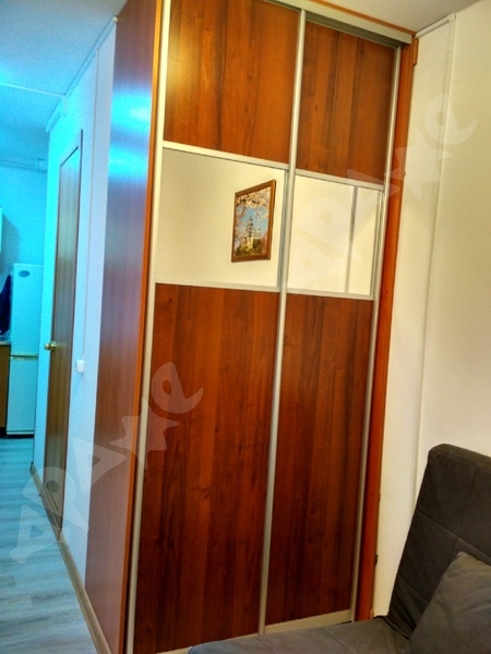 Мебель: кровать с местом хранения, шкаф с зеркалом, кухонный гарнитур, стул со столом, прихожая, вообщем-то все что есть на фото.