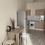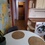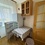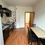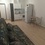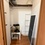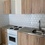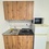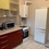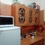 На 1м этаже. Есть плитка, микроволновка, чайник, диван, стол, шкаф, холодильник, стиральная машина (общая)